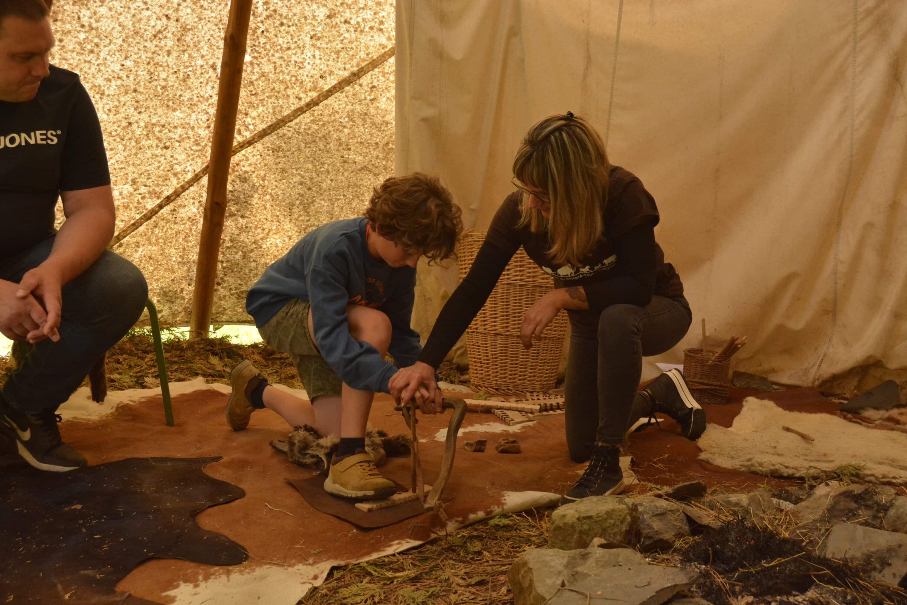 - Des démonstrations de techniques anciennes (tissage, poterie, taille de silex, tir au propulseur…)